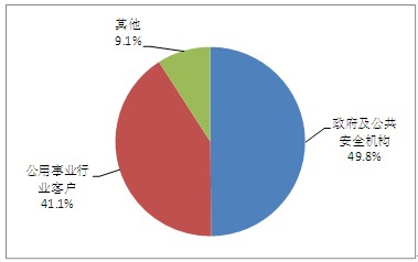 從細分市場來看,政府及公共安全機構為最大的細分市場,占總市場規(guī)模的49.8%,而且比重仍有上升趨勢,公用事業(yè)行業(yè)客戶市場占比41.1%,其他客戶占9.1%。