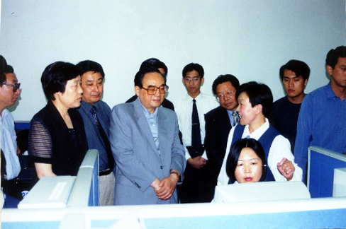 二〇〇一年五月二十六日9:10—10:40 中央書記處書記、中宣部部長(zhǎng)丁關(guān)根在省委副書記吳愛英、省宣傳部長(zhǎng)王秉聲、市委書記張惠來、市委副書記張旭升等陪同下一行二十人視察96111熱線。