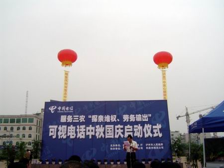 在9月28日上午的活動上,廣東中山的瀘縣務工人員通過可視電話與家鄉(xiāng)親人見了面。中秋團圓,溝通親情,當在廣東務工的曹雪平通過電話見到自己久違的妻子和孩子時,禁不住流下了熱淚,不住地感謝政府和電信部門為農(nóng)民辦了一件大實事。