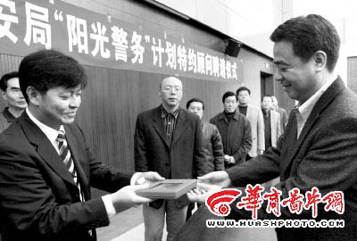 昨日下午2時(shí)許,重慶市公安局“陽光警務(wù)”特約顧問聘請儀式上,重慶市公安局副局長、政治部主任彭長健頒發(fā)了特約顧問聘書。重慶市社會科學(xué)院研究員孫元明等18人成為我市警方首批聘請的“陽光警務(wù)”特約顧問。他們將作為警方的“智囊團(tuán)”直接參與、監(jiān)督警務(wù)活動,聘任時(shí)間為兩年。
