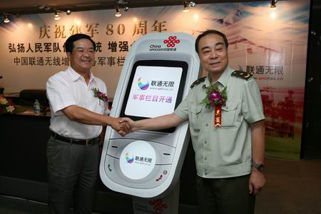 7月25日下午,中國(guó)聯(lián)通與解放軍總政治部宣傳部、解放軍報(bào)社等重要媒體共同宣布,將正式開通無線增值業(yè)務(wù)軍事欄目,將為聯(lián)通1.5億用戶提供軍事資訊服務(wù)。