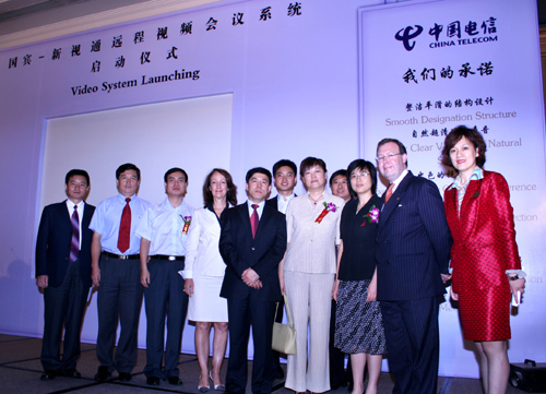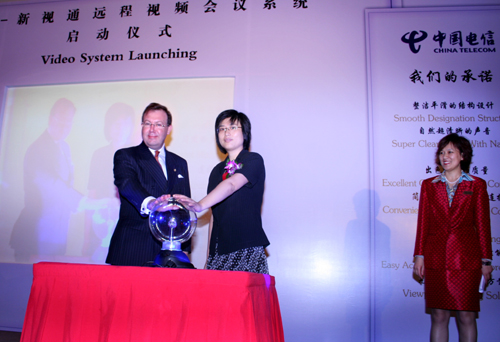 在新聞發(fā)布會儀式上,來自中國電信和北京國賓酒店信息中心的技術(shù)人員為來賓們現(xiàn)場演示了這套視頻會議系統(tǒng),國賓酒店安裝的這套全球先進(jìn)的“新視通”視頻會議系統(tǒng),是一款高檔分體式的會議室型終端服務(wù)體系,它可以提供非常靈活可靠及強(qiáng)大的功能,完全可以滿足各種會議室、教室或中小規(guī)模的會議應(yīng)用環(huán)境。采用專門集成的音響系統(tǒng),利用“新視通”的專利技術(shù),提升了音頻質(zhì)量。通過雙揚(yáng)聲器和雙麥克風(fēng),可以清晰的聽到每個(gè)發(fā)言人的聲音,輕松辨別多個(gè)發(fā)言人的同時(shí)談話,感受純正、豐滿的音頻質(zhì)量。與其他運(yùn)營商推出的視訊業(yè)務(wù)相比,