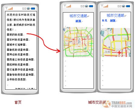 手機(jī)上通過(guò)短信查詢動(dòng)態(tài)交通信息,提供動(dòng)態(tài)路徑規(guī)劃,定制道路路況播報(bào)。