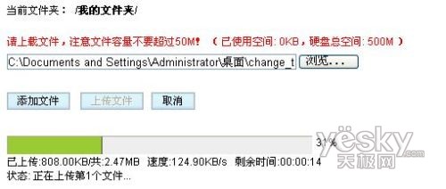 相對而言189在網(wǎng)絡(luò)硬盤功能方面則優(yōu)越很多,除了硬盤空間的容量外,支持上傳文件的進(jìn)度條顯示,而且上傳速率也不錯,基本穩(wěn)定保持在120KB/s。