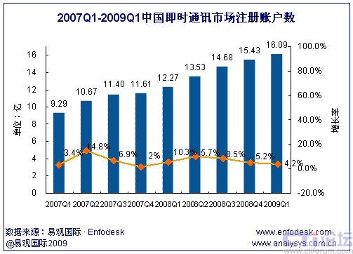 2009年第1季度中國即時通訊市場累計注冊賬戶數達16.1億
