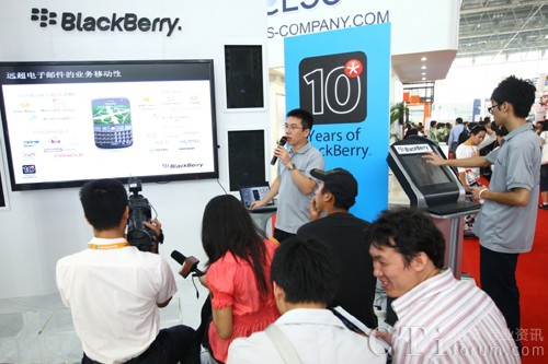 此次RIM公司的展臺(tái)比08年增加了一倍。頗具時(shí)尚和現(xiàn)代感的RIM公司展位(W1100)吸引本屆通信展人流注目,展廳外的“10”標(biāo)志著BlackBerry光輝的10年歷程。BlackBerry自十年前創(chuàng)立以來,不斷發(fā)展,已經(jīng)覆蓋全球超過165個(gè)國家,擁有超過475個(gè)運(yùn)營渠道,BlackBerry企業(yè)解決方案更成為移動(dòng)商務(wù)領(lǐng)域的黃金標(biāo)準(zhǔn),廣泛應(yīng)用于政府機(jī)關(guān)和眾多企業(yè),其中包括世界五百強(qiáng)企業(yè)。展廳內(nèi),RIM公司展示了BlackBerry