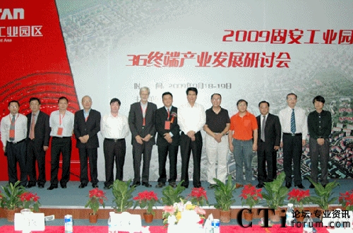 CTI論壇(ctiforum)9月22日消息: 固安工業(yè)園區(qū)2009•3G終端產業(yè)發(fā)展研討9月18日隆重舉行,來自政府機構、協(xié)會組織、科研機構、芯片廠商、生產廠商、設計廠商、咨詢機構、投資機構、新聞媒體等機構的100多位專業(yè)人士參與了本次活動,通過主題演講、圓桌對話、現(xiàn)場參觀等形式,全方位多角度地分析了3G終端及應用領域的發(fā)展態(tài)勢。由手機圈傳媒發(fā)起主辦的本次活動,也得到了固安工業(yè)園區(qū)的大力支持,固安縣常務副縣長王敏、固安工業(yè)園區(qū)管委會主任姚運濤及招商局局長盧亞光、副局長趙兵等領導也參加了本次活動。
