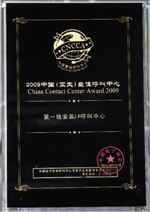 第一線安萊榮獲“2009中國(guó)(亞太)最佳外包呼叫中心”獎(jiǎng)
