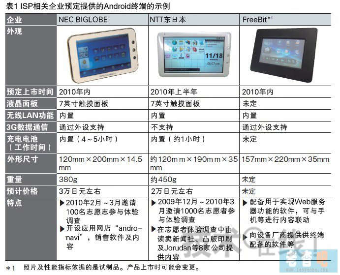 有類似舉措的并非只有NEC BIGLOBE一家。以ISP相關(guān)企業(yè)為中心,通信運(yùn)營商涉足Android終端業(yè)務(wù)的行動(dòng)在2010年將不斷出現(xiàn)(表1)。