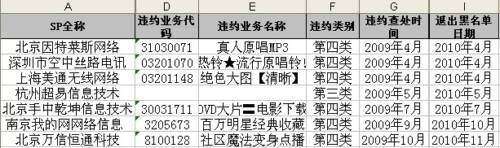 07年5月,中國移動通信集團上海有限公司司已公告各合作伙伴,將于07年6月實施《SP違約考核黑名單制度》,并于每月公布上月考核結果。現(xiàn)公布截至2010年3月8日的違約考核黑名單。望各合作伙伴規(guī)范業(yè)務運營,營造有利發(fā)展環(huán)境,樹立誠信服務的行業(yè)形象。