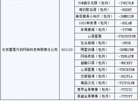 圖:北京雷霆萬均網絡科技有限責任公司被強制下線業(yè)務列表