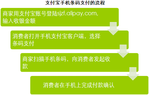 ① 支付成本低。不同于不斷上漲的刷卡成本,支付寶手機條碼支付只需一臺可上網(wǎng)筆記本以及一只支付寶免費提供的掃描槍(或一部可上網(wǎng)的智能手機)即可完成交易。