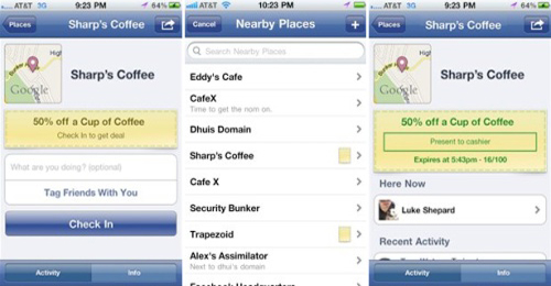正如Foursquare一樣,用戶利用Facebook Places“簽到”就能夠享受當(dāng)?shù)氐膬?yōu)惠交易。