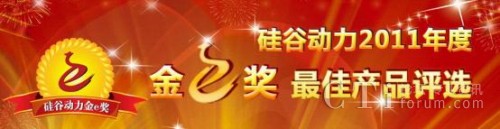 硅谷動力2011年度“金e獎”評選活動入圍產(chǎn)品選擇將會基于硅谷動力原創(chuàng)e值算法確定提名入圍產(chǎn)品,再經(jīng)過為期一個月網(wǎng)友投票,最后在綜合組委會專家評審團意見進行全面評價,推選出涉及整機、數(shù)碼影音、企業(yè)應用和DIY四大類28條產(chǎn)品線的“金e獎”最佳產(chǎn)品。