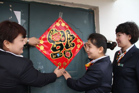 “阿姨,春節(jié)快到了,我們來(lái)看看您,前兩天已經(jīng)幫您把電充上了,這次給您帶了個(gè)手電,用著它以后到地下室可以照個(gè)亮!标(duì)長(zhǎng)阿依古麗向丁阿姨說(shuō)明來(lái)意,還跟丁阿姨試了試,手電是充電式的,不用換電池,丁阿姨挺高興的。臨走時(shí),阿依古麗還在她家門(mén)上貼了個(gè)大紅的“!弊,祝福老人家新年快樂(lè)。