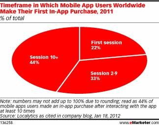 移動應(yīng)用分析公司Localytics提供的數(shù)據(jù)顯示,增加應(yīng)用粘性對用戶重復(fù)訪問應(yīng)用以及經(jīng)常性參與應(yīng)用內(nèi)置支付非常重要。舉例而言,連續(xù)數(shù)天玩一款手機(jī)游戲的玩家,比不經(jīng)常玩這款游戲的玩家更可能購買游戲附加的內(nèi)容或功能。Localytics的研究結(jié)果表明,忠實(shí)的應(yīng)用用戶比平均用戶使用應(yīng)用內(nèi)置支付高出25%。Localytics的數(shù)據(jù)還表明,44%的智能手機(jī)用戶只有與應(yīng)用互動10次以上,才會使用應(yīng)用內(nèi)置支付。該調(diào)查還顯示,在應(yīng)用發(fā)布12天開始,便會有用戶使用應(yīng)用內(nèi)置支付。