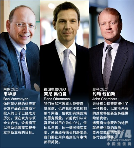 至少,他們不想成為“啞管道”供應(yīng)商,在28日的MWC 2012主題演講中,來自德國電信、阿爾卡特朗訊以及思科的首席執(zhí)行官們分享了他們的觀點。阿朗和思科也表示不希望運營商成為“啞管道”供應(yīng)商,理由很簡單:做“啞管道”賺不了什么錢。