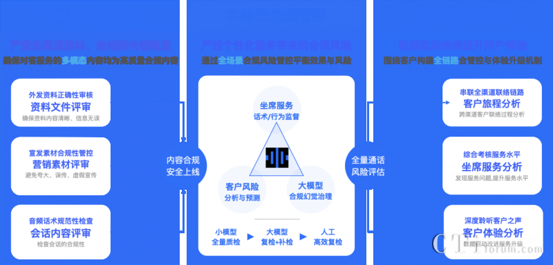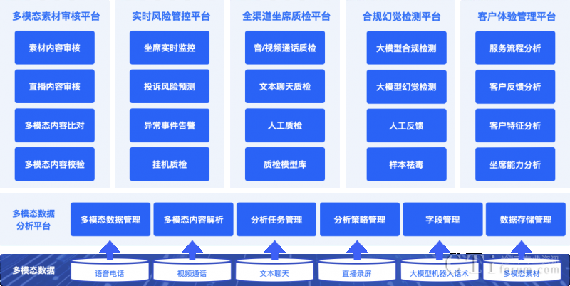 依托多項AI能力融合應(yīng)用,升級后的【多模態(tài)合規(guī)分析平臺】能處理對話數(shù)據(jù)、圖片、音頻和視頻等各種格式的信息,同時采用大小模型組合式AI合規(guī)檢查機制,對各個渠道的客戶互動數(shù)據(jù)進行聚合分析,實現(xiàn)大模型構(gòu)成坐席和客戶間全場景多模態(tài)數(shù)據(jù)檢測與分析,以及客戶體驗升級。