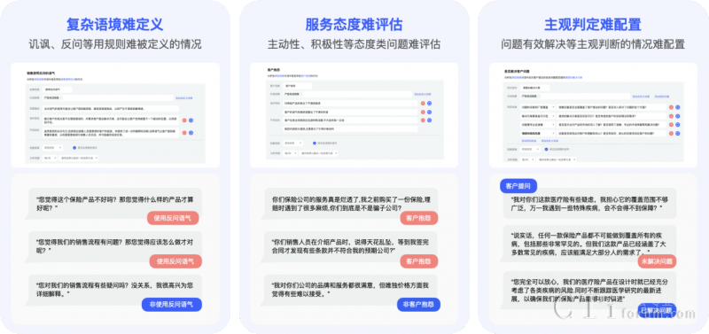 解決了傳統(tǒng)基于關(guān)鍵詞或NLP配置規(guī)則難以窮舉所有違規(guī)內(nèi)容,導(dǎo)致檢測遺漏的難題,智能質(zhì)檢的配置過程也更為簡便,只需簡單的描述輸入即可完成配置,大大降低了操作難度和成本。相較于人工質(zhì)檢,效率提升幅度超過1000倍。