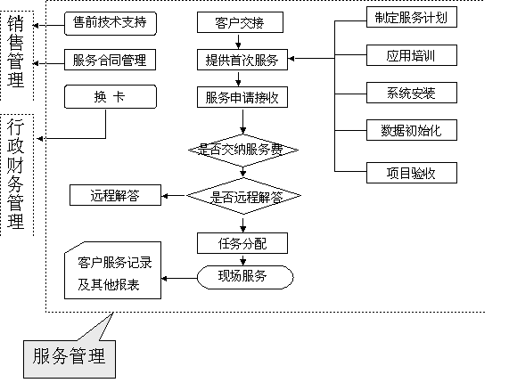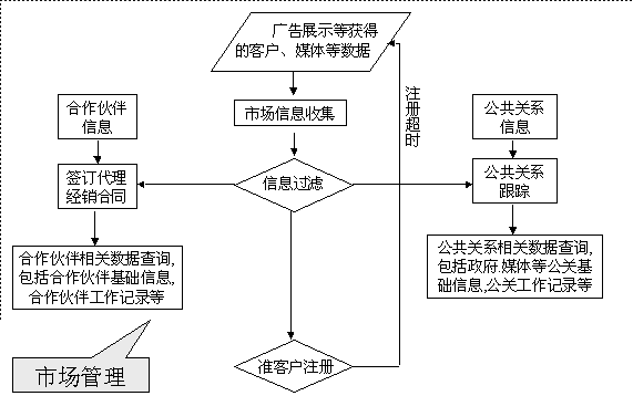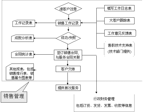 選定適合中小企業(yè)應(yīng)用的CRM軟件 ----啟利CRM ( ChineseCRM.Net ),并由啟利公司負責(zé)提供實施服務(wù)。CRM系統(tǒng)的主要模塊包括:市場管理、銷售管理、服務(wù)管理、行政管理,各模塊主要業(yè)務(wù)流程圖如下: