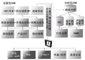CRM是一種以客戶為中心的業(yè)務(wù)模式,是由多種技術(shù)手段支持的、通過以客戶為中心達(dá)到增強(qiáng)企業(yè)競(jìng)爭(zhēng)力的商業(yè)策略,這一點(diǎn)已在市場(chǎng)上取得了共識(shí)。這種認(rèn)識(shí)對(duì)許多企業(yè)來說,或許仍覺得有些抽象。CRM要達(dá)到的目標(biāo),就是在適當(dāng)?shù)臅r(shí)間通過適當(dāng)?shù)那澜o適當(dāng)?shù)目蛻籼峁┻m當(dāng)?shù)漠a(chǎn)品和服務(wù),這不是憑一種技術(shù)手段就能夠?qū)崿F(xiàn)的。美國(guó)調(diào)研機(jī)構(gòu)Meta Group把CRM分為三類(如圖1所示):一是與企業(yè)業(yè)務(wù)運(yùn)營(yíng)緊密相關(guān)的運(yùn)營(yíng)型CRM。運(yùn)營(yíng)型CRM即所謂的前端辦公室應(yīng)用,包括銷售自動(dòng)化、市場(chǎng)自動(dòng)化、服務(wù)自動(dòng)化等應(yīng)用,以及前端辦公室和后端辦公室的無縫集成。二是以數(shù)據(jù)倉(cāng)庫為基礎(chǔ)、實(shí)現(xiàn)統(tǒng)一客戶視角的分析型CRM。分析型CRM與數(shù)據(jù)倉(cāng)庫密切相關(guān),運(yùn)用數(shù)據(jù)挖掘、OLAP、交互查詢和報(bào)表等手段,了解客戶的終身價(jià)值、信用風(fēng)險(xiǎn)和購(gòu)買趨向等。三是基于多媒體聯(lián)系中心、建立在統(tǒng)一接入平臺(tái)上的協(xié)作型CRM。協(xié)作型CRM是為客戶交互服務(wù)和收集客戶信息提供的各種渠道及聯(lián)系的手段。