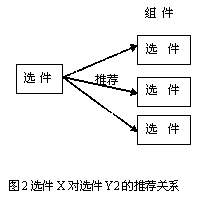 當(dāng)客戶(hù)選擇某個(gè)選件時(shí),系統(tǒng)自動(dòng)提示推薦另一選件,這種關(guān)系稱(chēng)為選件的推薦關(guān)系。比如,在配置手機(jī)產(chǎn)品時(shí),選擇了某電話(huà)選件,則推薦使用特定充電器型號(hào)選件,雖然其他類(lèi)似的選件也可以適用。如圖2所示,雖然選件X可以與組件Y內(nèi)的選件Y1,Y2,Y3搭配,但推薦使用Y2。