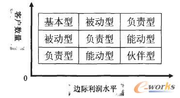 這5種類型之間并不具有簡單的優(yōu)劣對比或順序,因為企業(yè)所采用的客戶關(guān)系類型取決它的產(chǎn)品以及客戶的特征,不同企業(yè)甚至同一企業(yè)在對待不同客戶時,都有可能采用不同的客戶類型。一家生產(chǎn)日用化妝品的企業(yè),與它的化妝品消費者個人之間常會建立一種被動型的客戶關(guān)系,企業(yè)設(shè)立的客戶服務(wù)機構(gòu)或聯(lián)絡(luò)中心將聽取客戶的意見,處理客戶投訴以及改進產(chǎn)品;但這家企業(yè)同大型超市或零售企業(yè),同連鎖的美容產(chǎn)業(yè)機構(gòu)之間,?赡芙⒁环N伙伴型的客戶關(guān)系,實現(xiàn)產(chǎn)銷企業(yè)之間的互惠互利。科特勒提出,企業(yè)可以根據(jù)其客戶的數(shù)量以及產(chǎn)品的邊際利潤水平,根據(jù)圖3指示的思路,選擇合適的客戶關(guān)系類型。