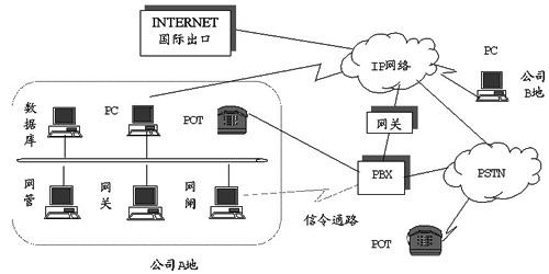 一般大企業(yè)具有自己的VPN網(wǎng)絡(luò),而且每一個(gè)分公司均有發(fā)達(dá)的計(jì)算機(jī)局域網(wǎng)和PBX資源,此時(shí)應(yīng)充分利用這兩種資源。通過這種網(wǎng)絡(luò)結(jié)構(gòu),企業(yè)建立了內(nèi)部虛擬計(jì)算機(jī)、電話、傳真網(wǎng)絡(luò),大大節(jié)省了公司內(nèi)部電話傳真的費(fèi)用,實(shí)際上是把長(zhǎng)途費(fèi)用變成了虛似本地網(wǎng)業(yè)務(wù)費(fèi)用(但長(zhǎng)途線路仍需租用),有時(shí),企業(yè)的PBX可以直接連到Internet上,這樣可繞過收費(fèi)偏貴的本地網(wǎng)PSTN部分,這樣的網(wǎng)絡(luò)設(shè)計(jì)對(duì)大企業(yè)來說有較大的自主性。