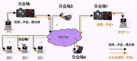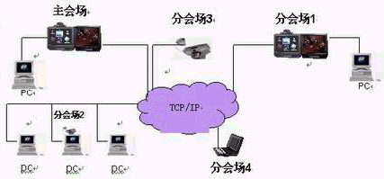 會(huì)議的組織,召開,管理由主會(huì)場(chǎng)來(lái)完成。因此,主會(huì)場(chǎng)的視頻,聲音,通知,指示,下達(dá)的文件資料各分會(huì)場(chǎng)都應(yīng)該收到。當(dāng)某分會(huì)場(chǎng)發(fā)言時(shí),其視頻,聲音同樣要傳送給其他會(huì)場(chǎng)。(如下圖所示)上述所有動(dòng)作的完成依賴組播技術(shù)。通過(guò)組播技術(shù)把主會(huì)場(chǎng)的各種數(shù)據(jù)發(fā)送到參加會(huì)議的分會(huì)場(chǎng)中,而且把發(fā)言分會(huì)場(chǎng)的視音頻數(shù)據(jù)發(fā)送給其他會(huì)場(chǎng):即主會(huì)場(chǎng)和發(fā)言分會(huì)場(chǎng)的各種數(shù)據(jù)只要在網(wǎng)上發(fā)送一次,其他會(huì)場(chǎng)都將收到此數(shù)據(jù),(這就是有別于點(diǎn)對(duì)點(diǎn)通信方式的地方)而與這兩個(gè)會(huì)場(chǎng)在同一網(wǎng)段卻不參加會(huì)議的非成員不會(huì)收到數(shù)據(jù)(只要設(shè)備支持,這也是有別于廣播的地方)。因此,當(dāng)會(huì)議成員增加時(shí),不會(huì)產(chǎn)生信息傳輸量劇增,帶來(lái)無(wú)法忍受的網(wǎng)絡(luò)延時(shí)和抖動(dòng)。