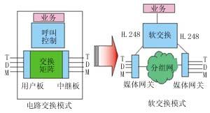 在電路交換網(wǎng)中,呼叫控制、業(yè)務(wù)提供以及交換矩陣均集中在一個交換系統(tǒng)中,而軟交換的主要設(shè)計思想是業(yè)務(wù)/控制與傳送/接入分離,各實體之間通過標準的協(xié)議進行連接和通信,以便在網(wǎng)上更加靈活地提供業(yè)務(wù),見圖1。更具體地講,軟交換是一個基于軟件的分布式交換/控制平臺,它將呼叫控制功能從網(wǎng)關(guān)中分離出來,開放業(yè)務(wù)、控制、接入和交換間的協(xié)議,從而真正實現(xiàn)多廠家的網(wǎng)絡(luò)運營環(huán)境,并可以方便地在網(wǎng)上引入多種業(yè)務(wù)。