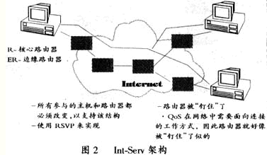 在廣域網(wǎng)上,IETF(Internet Engineering Task Force)定義了兩種IP QoS結構——綜合業(yè)務結構(Int-Serv