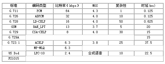 標(biāo)準(zhǔn) 編碼類(lèi)型 比特率 MOS 復(fù)雜性 時(shí)延 (kbps) (ms) G.711 PCM 64 4.3 1 0.125 G.726 ADPCM