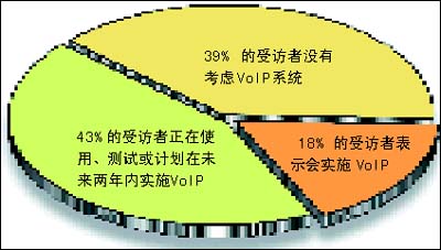 該調(diào)查收集了全球254名高級(jí)管理人員對(duì)未來(lái)企業(yè)網(wǎng)絡(luò)的意見(jiàn)和看法。其中,43%的受訪者表示,他們正在使用、測(cè)試或計(jì)劃在未來(lái)兩年內(nèi)實(shí)施VoIP;另外 18% 的受訪者表示,從長(zhǎng)遠(yuǎn)的角度來(lái)講,他們會(huì)實(shí)施 VoIP。市場(chǎng)預(yù)測(cè)也顯示相同的樂(lè)觀前景。研究機(jī)構(gòu)Gartner Dataquest預(yù)期到2008年,公用電話交換網(wǎng) (PSTN) 的零售語(yǔ)音收入將輕微下跌,而VoIP的零售收入則上升 38.6%。