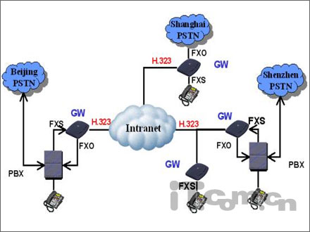 、 ADSL 、 ISDN 等,只需在原有或新建的局域網(wǎng)服務器中運行一套網(wǎng)守軟件。局域網(wǎng)內的所有網(wǎng)絡電話都可注冊到該網(wǎng)守上,同時給每一臺網(wǎng)絡電話分配一個不相沖突的電話號碼即可實現(xiàn)局域網(wǎng)內各個成員之間的免費通話。一方面可以實現(xiàn)