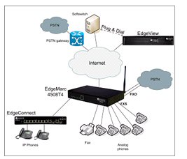 衡量VoIP質(zhì)量好壞的參數(shù)有MOS值, 延遲, 抖動以及丟包等參數(shù), 目前市場上能夠測量這些參數(shù)的系統(tǒng)并不多; 為了幫助用戶更好地了解其VoIP業(yè)務(wù)的好壞, 積極采取措施改善VoIP質(zhì)量, 位于美國加州Santa Clara的Edgewater網(wǎng)絡(luò)公司推出了可以測量VoIP MOS值的EdgeMarc系列語音網(wǎng)關(guān), 該系列語音網(wǎng)關(guān)與VoIP網(wǎng)絡(luò)管理系統(tǒng)EdgeView一起, 可以組成了一個功能完善可以監(jiān)控每個VoIP呼叫MOS值的VoIP運(yùn)營管理平臺. EdgeMarc4500非常適合中小企業(yè)使用, 用戶既可以通過AP無線上網(wǎng), 又可以通過Voice Gateway利用傳統(tǒng)模擬電話打IP電話,