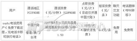 資費(fèi)上,國內(nèi)電話2點(diǎn)P5P點(diǎn)/分鐘(0.20元/分鐘)。軟件提供多種的充值方式。