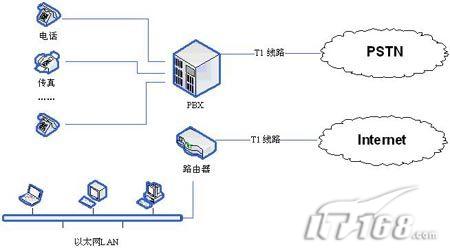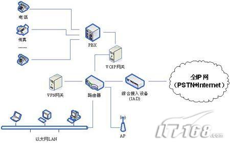 IP-PBX或者分組語音交換(PVX),以及綜合接入設備(IAD),從而取代傳統(tǒng)的PBX和終端。IAD通常支持基于DSL的業(yè)務,因此部署時不需要多個物理線路的開銷,因為一條來自IAD的物理線路能夠支持多個虛擬電路。PVX可以處理各種分組話音服務,而且可以避免升級和互操作性的問題。