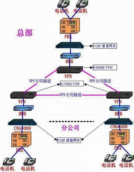 。2)分公司有電話交換機,語音網(wǎng)關(guān)的連接和設(shè)置與總公司一樣。可以把分公司外部的中繼號碼設(shè)置為8。
