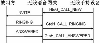 當用戶通過無線手持設(shè)備撥打一個號碼時,無線手持設(shè)備將發(fā)送一個HtoG_CALL_ NEW的內(nèi)部會話信令連同呼叫的號碼給無線語音網(wǎng)關(guān),無線語音網(wǎng)關(guān)收到該信令后,將根據(jù)該信令構(gòu)造相應的SIP消息并發(fā)送到外部網(wǎng)絡。當無線語音網(wǎng)關(guān)收到來自被叫方表示振鈴信息的暫時應答RINGING時,將發(fā)送一個GtoH_CALL_RINGING的內(nèi)部會話信令給手持設(shè)備。當無線語音網(wǎng)關(guān)收到來自被叫方表示應答的信息ANSWERED時,語音網(wǎng)關(guān)將啟動RTP線程并發(fā)送一個GtoH_CALL_ANSWERED的內(nèi)部會話信令給手持設(shè)備以通知被叫方已應答。此時手持設(shè)備開啟語音進程,與被叫方實現(xiàn)通話。