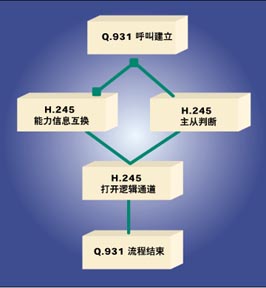 Q.931呼叫建立流程啟動呼叫建立過程并且通知遠程終端有一個呼入。當(dāng)呼叫建立起來后,某個終端可能啟動H.245規(guī)定的主從判斷流程或能力信息互換流程。每個終端都需要執(zhí)行能力信息互換流程,但是只要一個終端執(zhí)行主從判斷流程就可以了。主從判斷和能力信息互換完成后,邏輯信道打通了。最后,該對話通過另一個Q.931流程關(guān)閉。