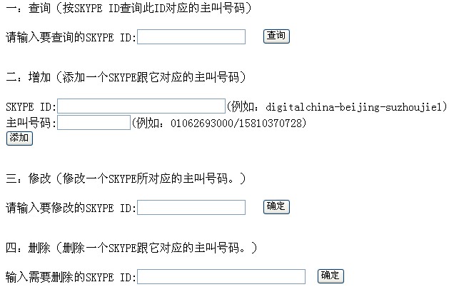 1.增加一個(gè)針對(duì)終端用戶賬戶ID的綁定管理系統(tǒng),如圖用戶在第二項(xiàng)中輸入自己的賬戶ID,然后再輸入想要作為來(lái)顯示的主叫號(hào)碼完成綁定操作,后臺(tái)php程序向數(shù)據(jù)庫(kù)中插入一條新記錄(X-Lite