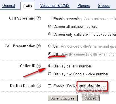 也許很多朋友嘗試不成功,原因是還需要在Google voice中設(shè)定 Display caller’s number.因?yàn)?8tel需要在電話呼入的時(shí)候識(shí)別來(lái)電顯示的。