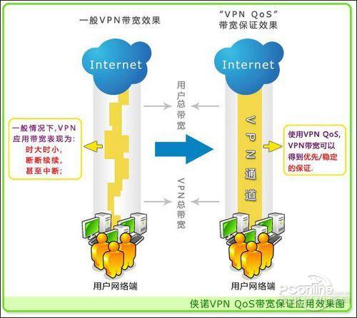 二者大大降低了VPN的使用效率。 俠諾科技在用心服務(wù)各型企業(yè)用戶的過程中,也聆聽到了他們的需求心聲,在業(yè)界率先推出了創(chuàng)新性的VPN QoS技術(shù)。它不但能在總體用戶帶寬的基礎(chǔ)上充分保證VPN線路的整體帶寬,也同時(shí)能針對(duì)VPN通道中的多種特定應(yīng)用進(jìn)行靈活的帶寬管理。這個(gè)技術(shù),能使以上兩個(gè)問題同時(shí)迎刃而解,因此它將會(huì)大大提升VPN的使用效率。
