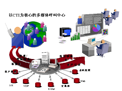 相比之下,以CTI技術為核心的呼叫中心才有可能打破這些局限,成為真正具有開放性、可靠性、靈活性、統(tǒng)一性的多媒體呼叫中心。優(yōu)利公司提供的以CTI技術為核心的呼叫中心,具有統(tǒng)一的CTI核心組件、統(tǒng)一的智能轉接策略、統(tǒng)一的呼叫統(tǒng)計和業(yè)務統(tǒng)計、統(tǒng)一的業(yè)務代表座席應用、統(tǒng)一的管理配置環(huán)境及完善的互聯(lián)網(wǎng)服務接口功能模塊,是客戶選擇呼叫中心與互聯(lián)網(wǎng)技術相結合的有效方案之一。