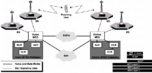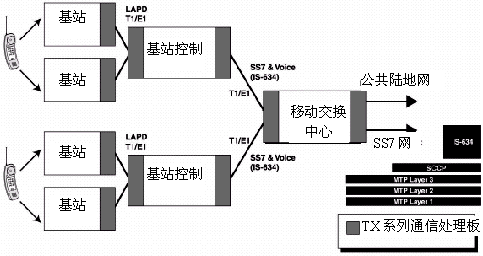 SS7也廣泛用作無線網(wǎng)和PSTN的接口信令,以及在不斷增加的無線網(wǎng)絡(luò)子系統(tǒng)之間。在GSM系統(tǒng)中,SS7還被用作基站控制中心(BSC)和移動交換中心(MSC)之間的信令。
