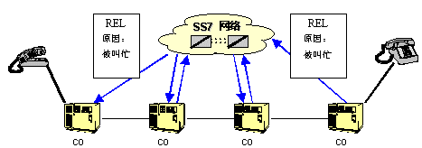 - 被叫交換局收到主叫交換局發(fā)來(lái)的IAM消息,查詢(xún)被叫電話狀態(tài),若這時(shí)被叫用戶正忙,則向主叫交換局發(fā)回REL消息,REL消息包含了拆線原因:被叫用戶忙。主叫交換局向主叫送忙音,呼叫不能建立。這種情況下不需要占用任何中繼設(shè)備。
