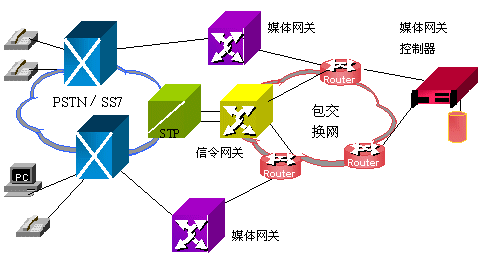 分布式VoIP網(wǎng)關(guān)是目前比較普遍的一種應(yīng)用,所以我們詳細(xì)講解它的結(jié)構(gòu)。分布式VoIP網(wǎng)關(guān)包括三部分:信令網(wǎng)關(guān)、媒體網(wǎng)關(guān)和媒體網(wǎng)關(guān)控制器。