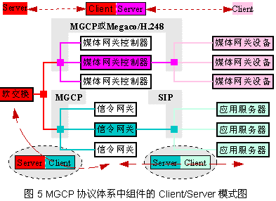 Gateway Controller)通過(guò)MGCP或Megaco/H.248構(gòu)成服務(wù)器/客戶(hù)端關(guān)系,而媒體網(wǎng)關(guān)控制器有作為服務(wù)器同樣通過(guò)MGCP等協(xié)議控制媒體網(wǎng)關(guān)設(shè)備(Media
