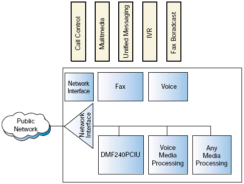 與其它網(wǎng)絡(luò)接口和媒體處理板卡結(jié)合起來, DM/F240-PCIU 和 DM/F300-PCIU定位為提供面向傳真服務(wù)器和統(tǒng)一消息市場段的產(chǎn)品.