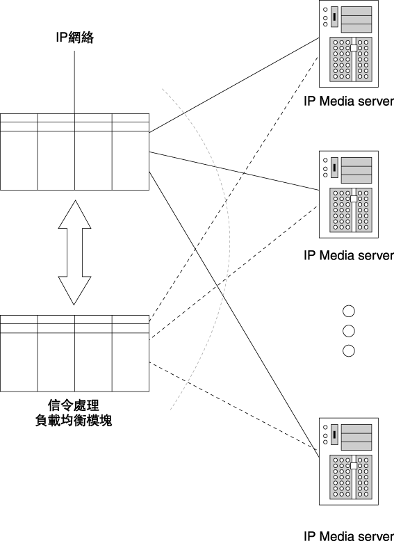 推薦使用信令與媒體流分離模式,前端服務(wù)器兩臺互為備份地配置,實現(xiàn)信令控制功能和負(fù)載均衡功能,后臺由一組媒體服務(wù)器池組成,實現(xiàn)媒體流的處理。這樣的架構(gòu)可以保證整體系統(tǒng)高可用性和可擴展性